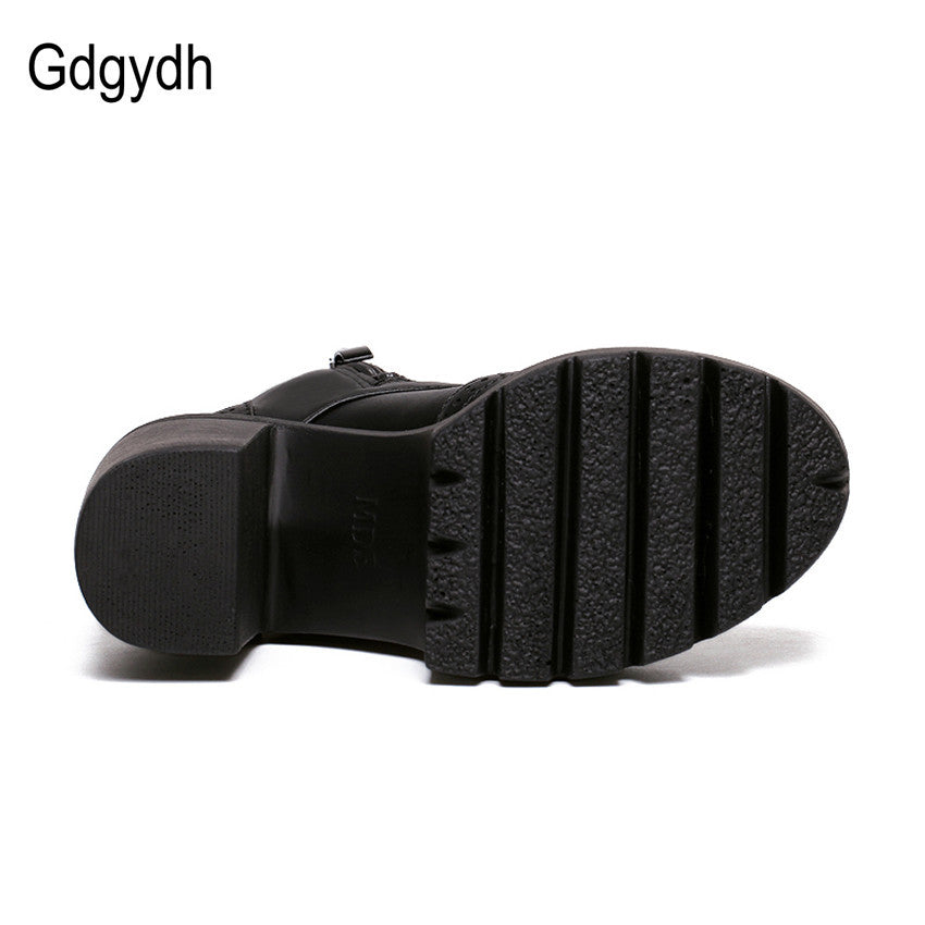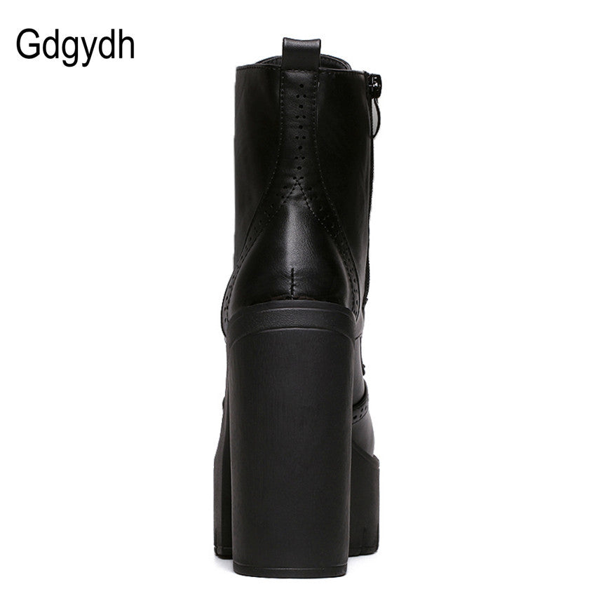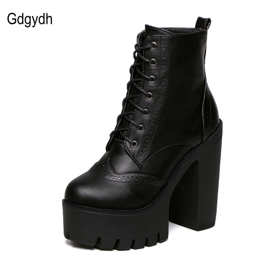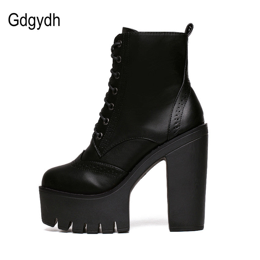 Gdgydh Hot Sale Black Square Heels Platform Boots Ankle Boots Female Lace Up Women Shoes Fashion 2017 Spring Autumn New Brand