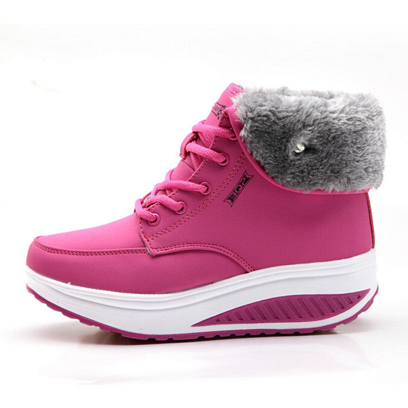 Women Snow boots Wedges Ankle Boots Fashion Slimming Swing Shoes Plush Solid Round Toe Platform Shoes Lady Casual Winter Boots